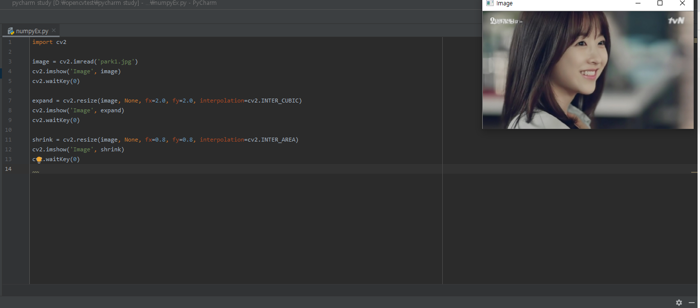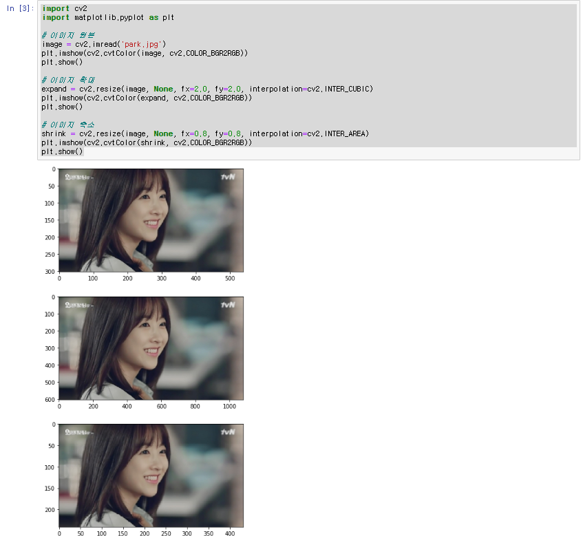 cv2.resize(image, dsize, fx, fy, interpolation) : 이미지 크기 조절