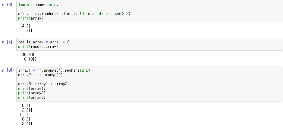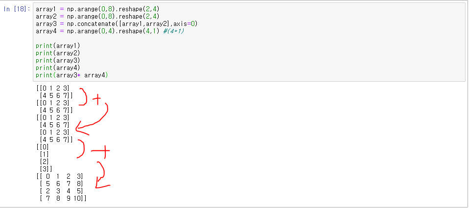 - Numpy는 서로 다른 형태의 배열을 연산할 때는 행 우선으로 수행됩니다.