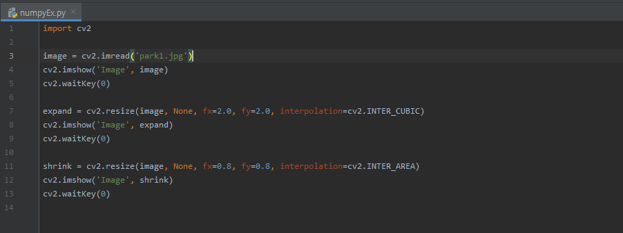 | INTER_AREA | 사이즈를 작게 할 때 주로 사용합니다. |