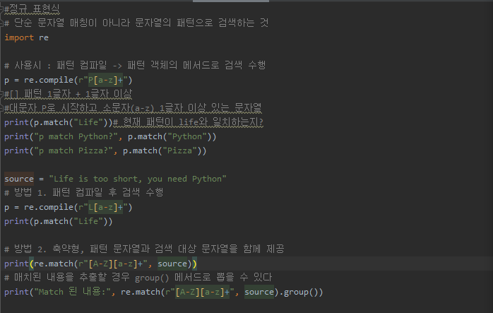 # 방법 2. 축약형, 패턴 문자열과 검색 대상 문자열을 함께 제공