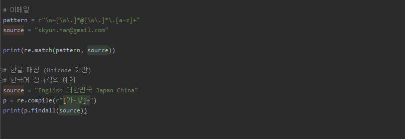 # 한글 매칭 (Unicode 기반)