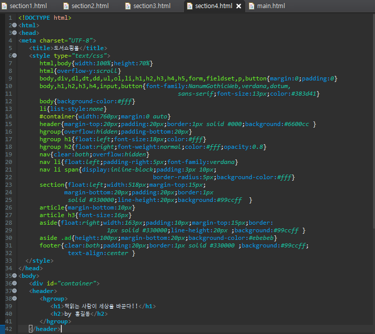 다음은 <section>태그 안에 <article>태그를 사용해 본문을 표시하겠습니다