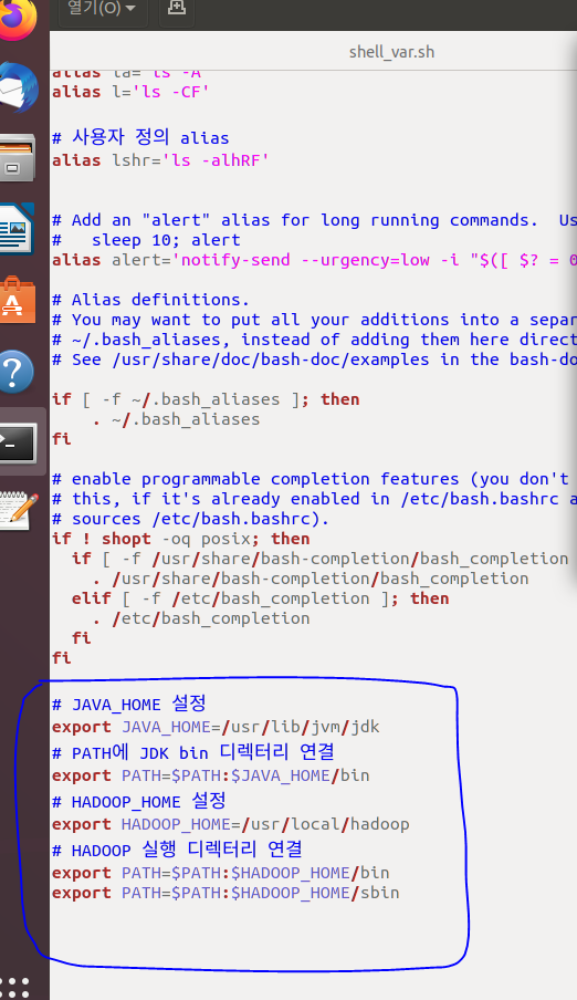 화면에 #JAVA_HOME 설정 이하를 입력해 줍니다