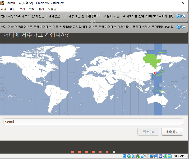 다음으로 시간 설정도 Seoul로 되있네요. 계속하기!