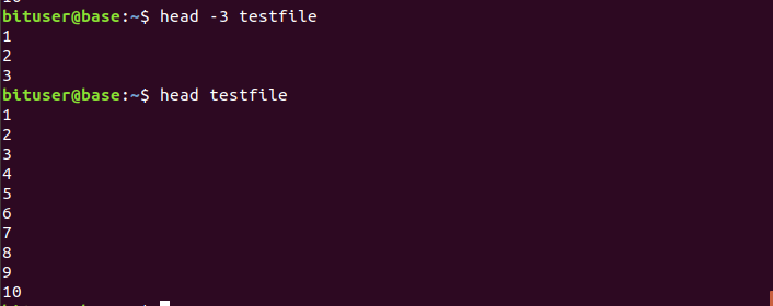 파일의 앞 부분을 출력, 옵션을 정하지 않으면 10줄을 보여줍니다.