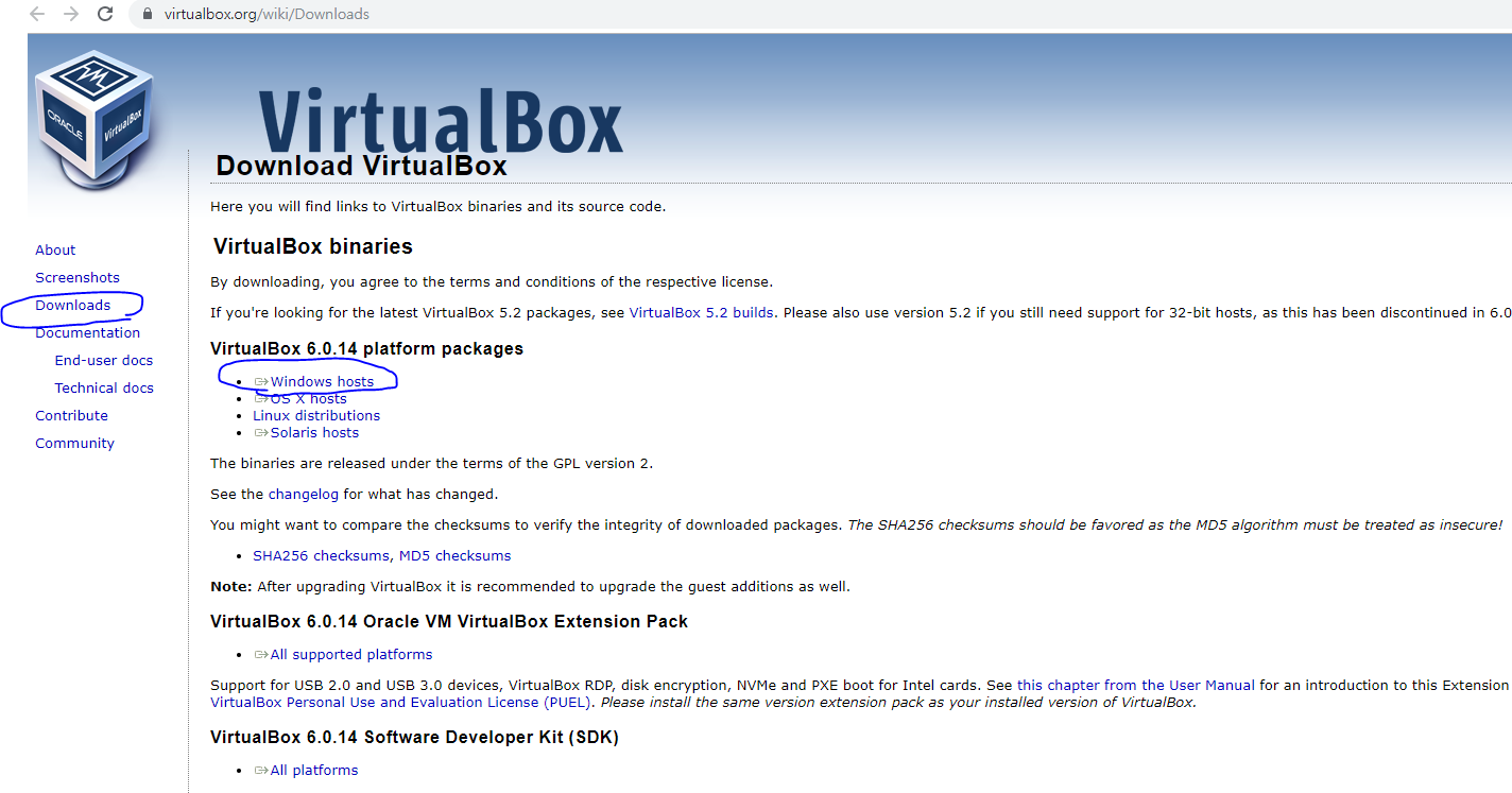 https://www.virtualbox.org/wiki/Downloads 접속해서 다운로드!