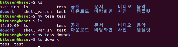 ex) tesa파일명을 tess로 바꾸었고 tess를 dowork로 이동시켰습니다.