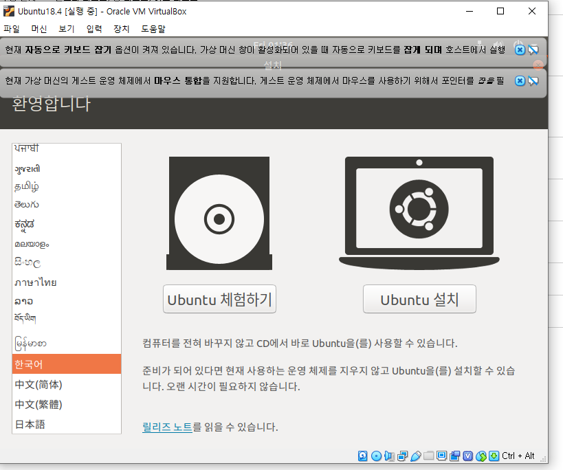 그리고 호스트 키가 처음엔 오른쪽 CTRL로 되어있는데