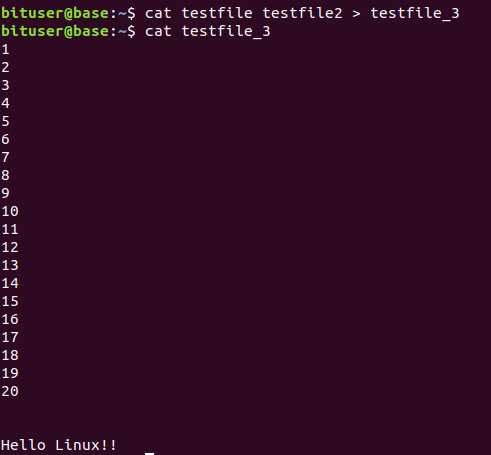 testfile 과 testfile2 를 합친 testfile_3 출력