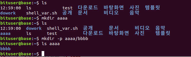 -p를 이용하여 aaaa폴더 내에 bbbb라는 폴더생성