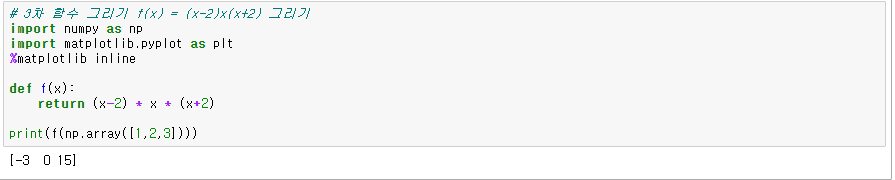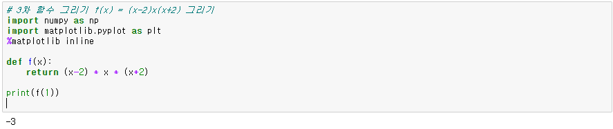 3차 함수 f(x)=(x-2)x(x+2) 그리기