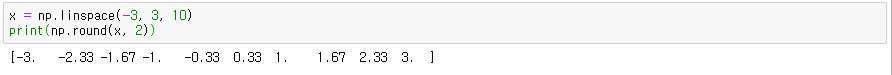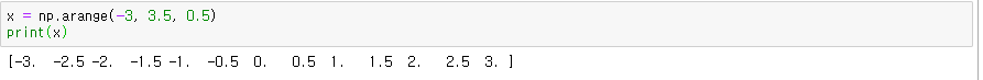 np.arange(-3, 3, 0.5)로 하면 2.5까지의 범위를 다루므로, 3보다 큰 np.arange(-3, 3.5, 0.5)로 설정한 점에 주의하세요