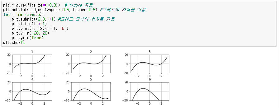가로 길이는 w이고 세로길이는 h입니다. subplot으로 늘어놓을 때, 좌우 및 상하 간격은 plt.subplots_adjust(wspace=w, hspace=h)로 조절할 수 있습니다.