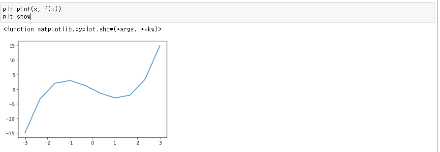 그럼 여기서 x를 사용하여 f(x)의 그래프를 그려봅시다. 다음처럼 실행 결과가 나타납니다.