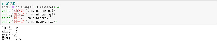 array1 에 0~15까지 4*4 배열의 크기로 만들어 줍니다.