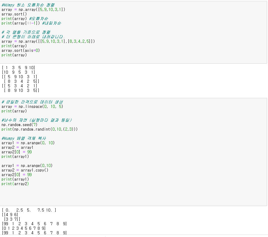 | Numpy(저장, 불러오기, 정렬, 균일한 간격으로 데이터 생성, 중복 원소 제거) (0) | 2019.12.23 |