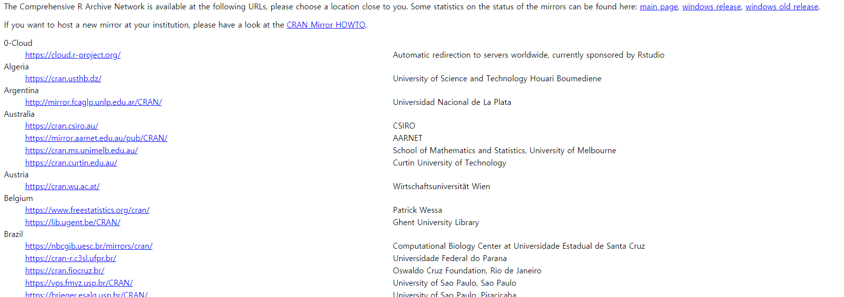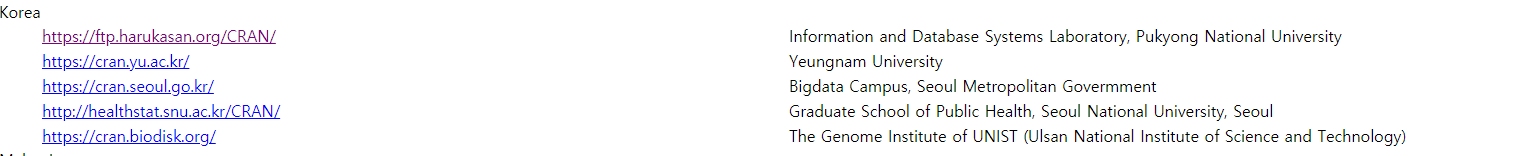 Download에 CRAN을 눌러주세요