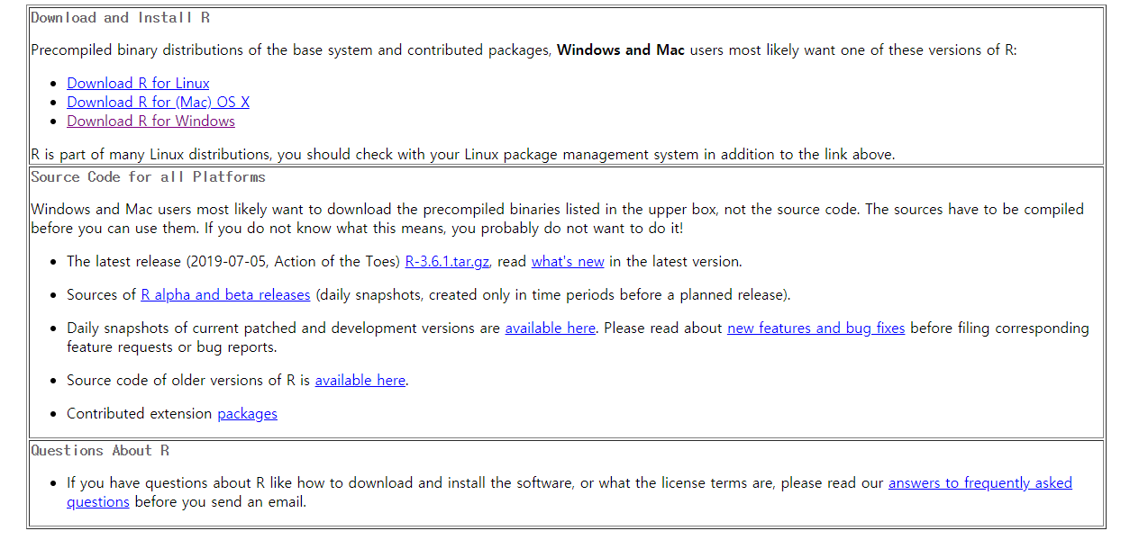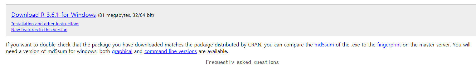 Download R 3.6.1 for Windows 클릭하시면