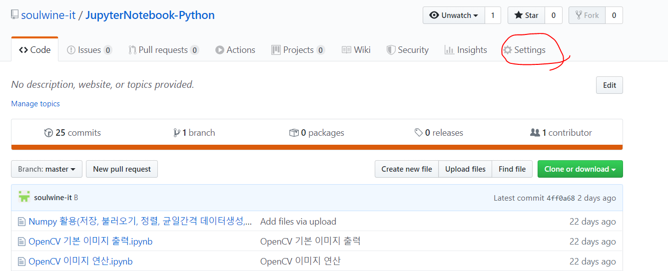 1. 내 컴퓨터에 새로운 폴더를 만들고 GitHub의 원한느 저장소 받아오기.