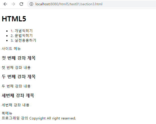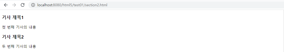 다음은 <section>태그 안에 <article>태그를 사용해 본문을 표시하겠습니다
