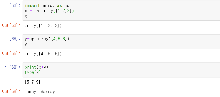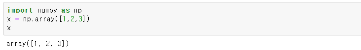 type(x)를 입력하면 x가 numpy.ndarray형인 것을 알 수 있습니다.