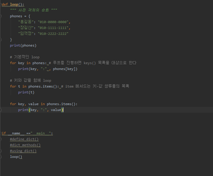 for key in phones: # 루프를 진행하면 keys() 목록을 대상으로 한다