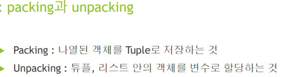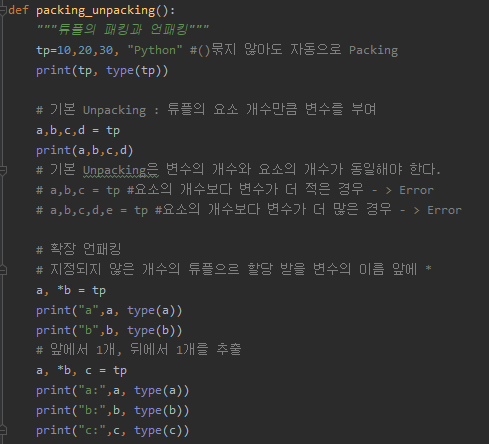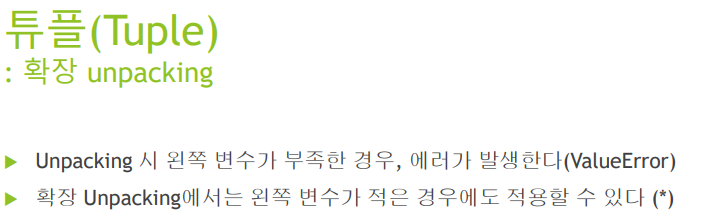 # a,b,c = tp #요소의 개수보다 변수가 더 적은 경우 - > Error