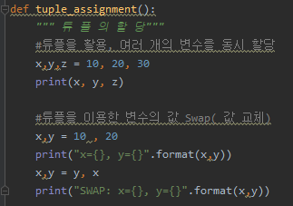 """ 튜 플 의 할 당"""