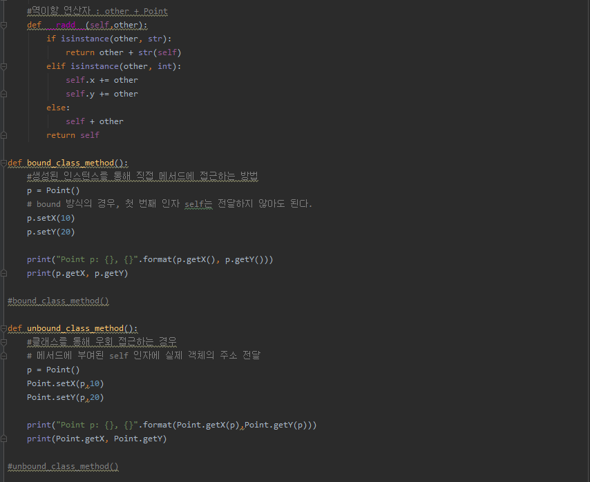 # bound 방식의 경우, 첫 번째 인자 self는 전달하지 않아도 된다.