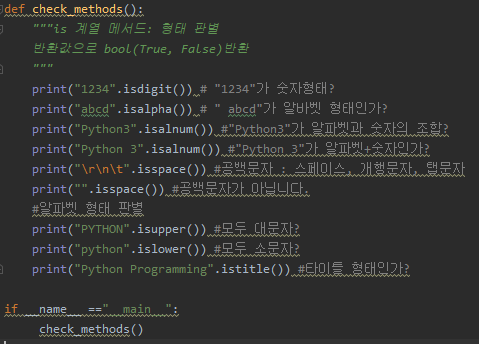 Python is함수,isdigit(), isalpha(), isalnum(), isspace(), isupper(), islower(), istitle()
