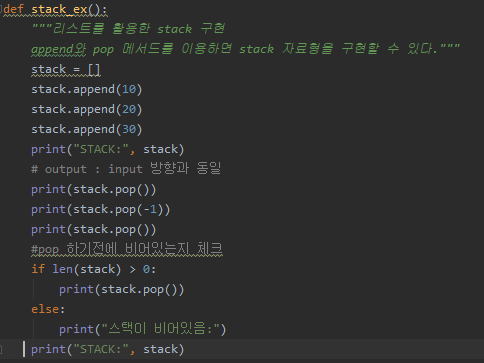 append와 pop 메서드를 이용하면 stack 자료형을 구현할 수 있다."""
