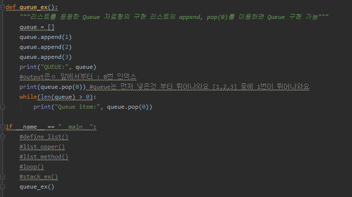 print(queue.pop(0)) #queue는 먼저 넣은것 부터 튀어나와요 [1,2,3] 중에 1번이 튀어나와요