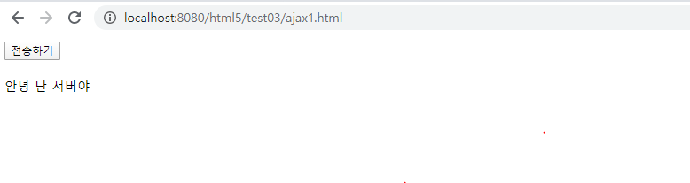 전송하기를 누르시면 서버에서 ajax로 전송된 데이터를 <div> 엘리먼트에 표시합니다.
