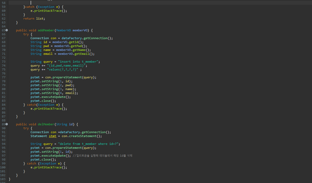 - 생성된 커넥션 객체는 DBMS와 연결합니다.
