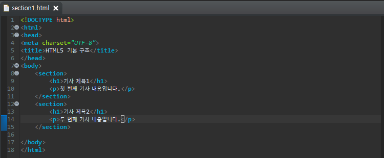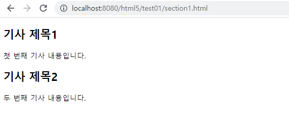 다음은 <section>태그 안에 <article>태그를 사용해 본문을 표시하겠습니다