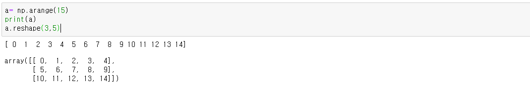 행렬의 크기 변경하는 경우 변수명.reshape(n,m)을 사용합니다.