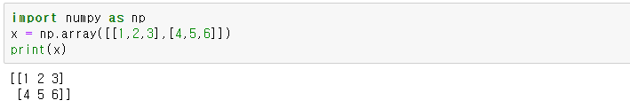 ndarray의 2차원 배열로 다음과 같이 행렬을 정의 할 수 있습니다.