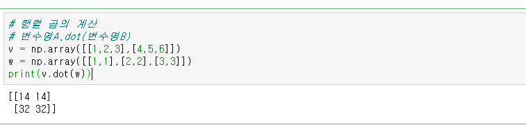 변수명1.dot(변수명2)