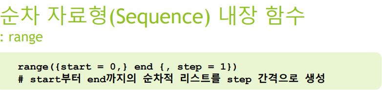 # 인자가 3개 : 시작값, 끝값, 간격값