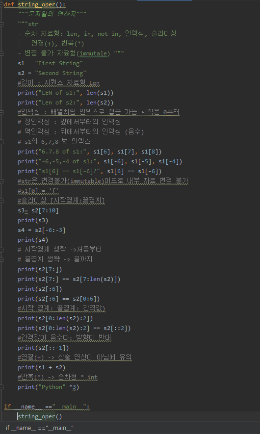 Python 문자열연산자, len,slicing,indexing