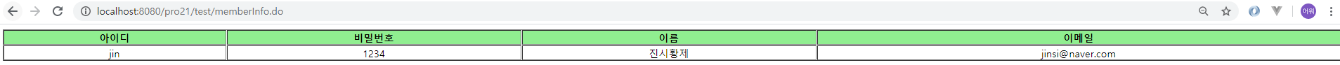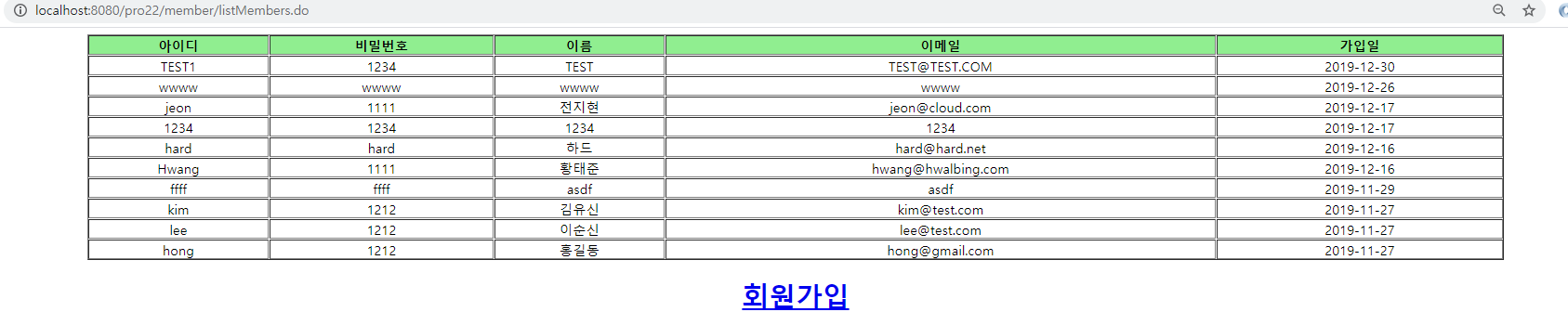 4. listMembers.jsp에서는 조회한 회원 정보를 표시해줍니다.